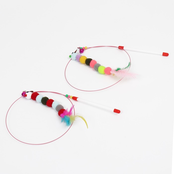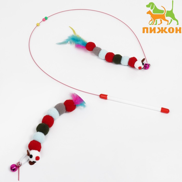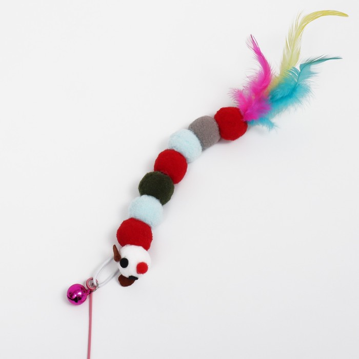 Дразнилка-удочка «Гусеница с перьями разноцветная», стальная проволока, 110 см, микс цветов