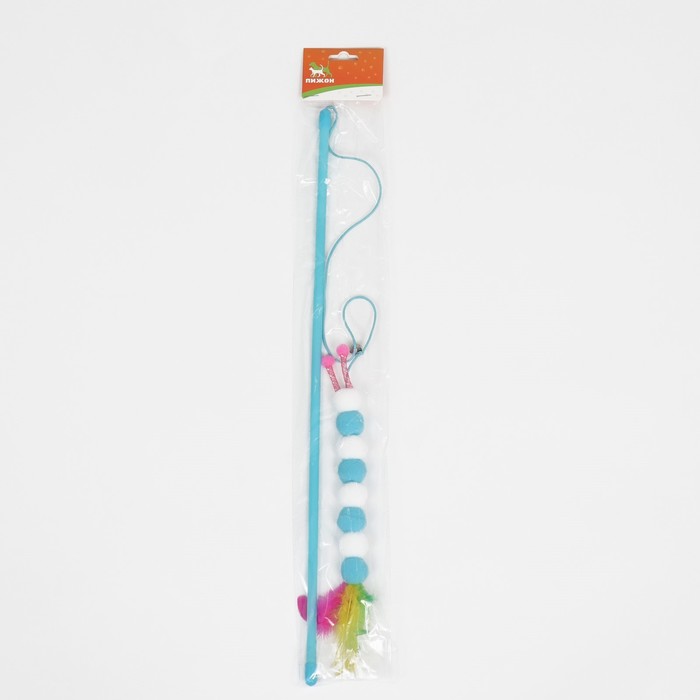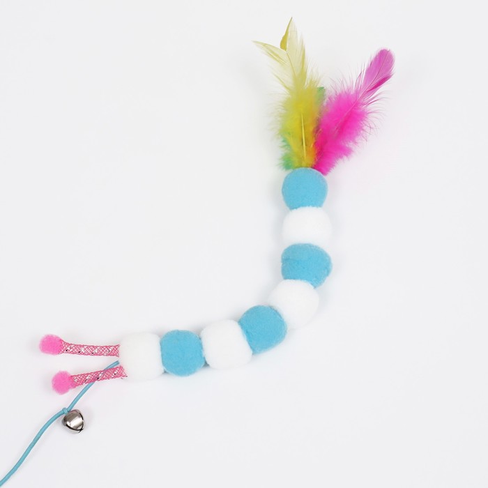 Дразнилка-удочка «Гусеница с перьями», ручка 49 см, голубая