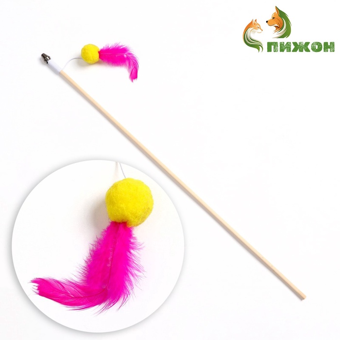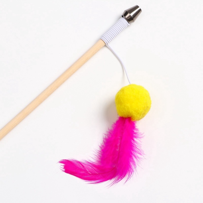 Дразнилка - удочка «Мячик с перьями», на деревянной палочке, цвет МИКС