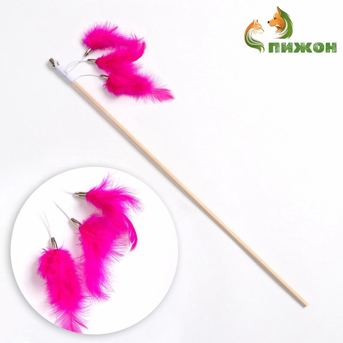 Дразнилка - удочка «Салют из перьев», на деревянной палочке, цвет МИКС