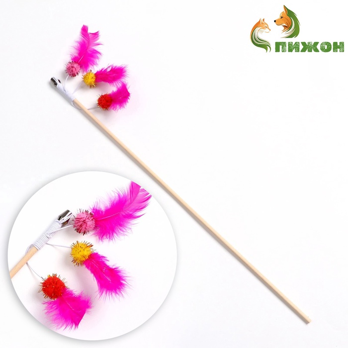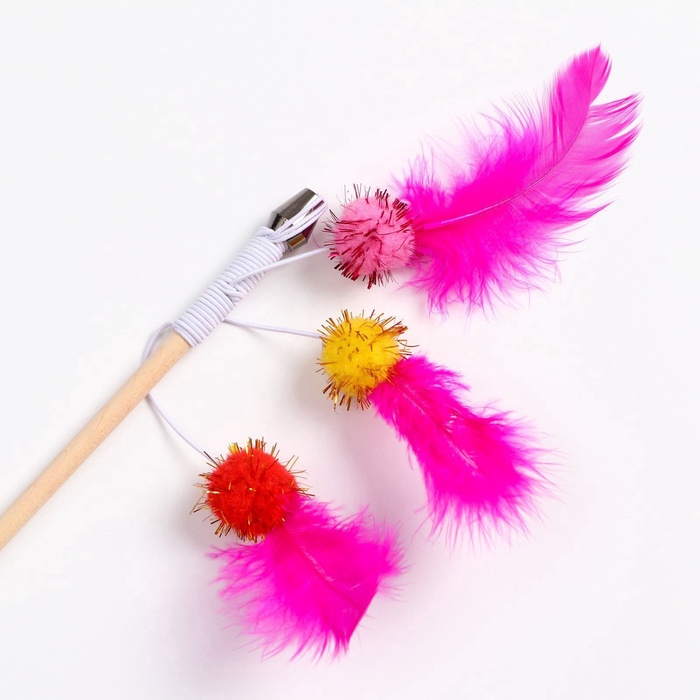 Дразнилка - удочка «Салют из перьев с шариками», на деревянной палочке, цвет МИКС