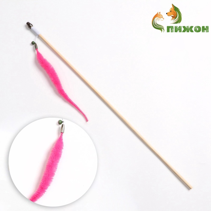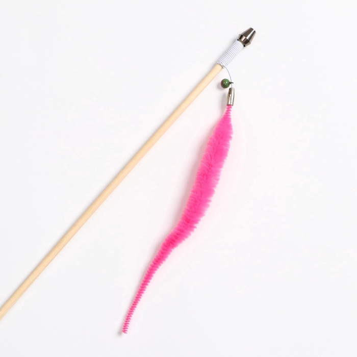 Котики любят не только спать, но и играть. Яркая и веселая удочка-дразнилка с червячком не оставит равнодушным даже самого ленивого кота.