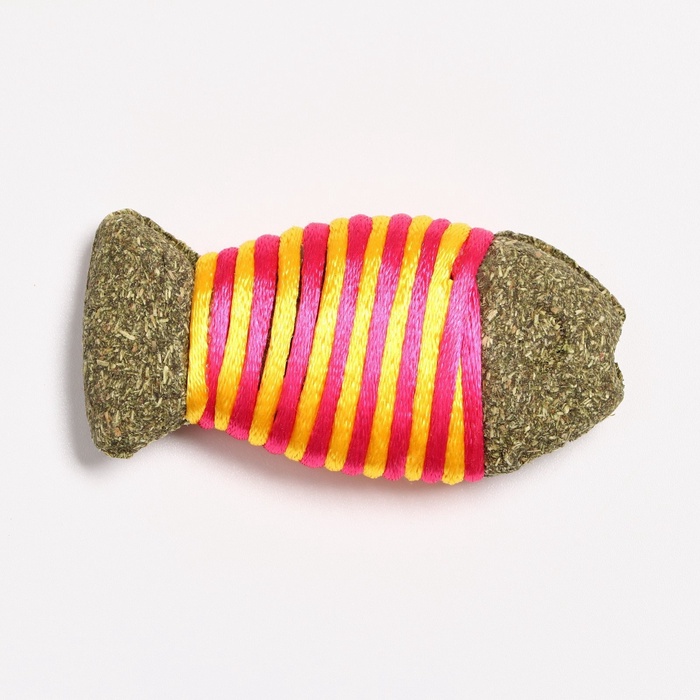 Игрушка для кошек из кошачьей мяты «Полосатая рыбка», 7 см, жёлтая, розовая
