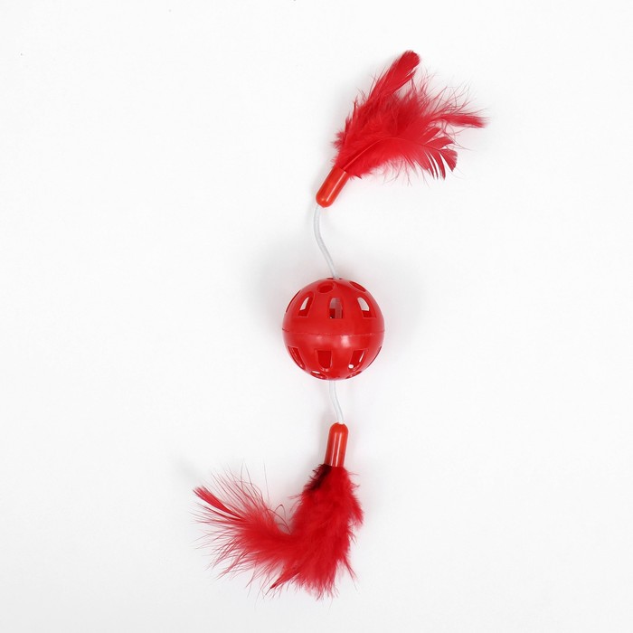 Игрушка для кошек «Вертолёт», шарик 3.8 см, с бубенчиком и перьями, красная