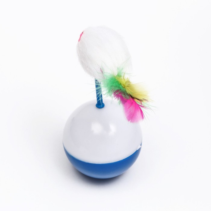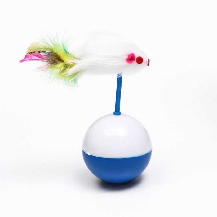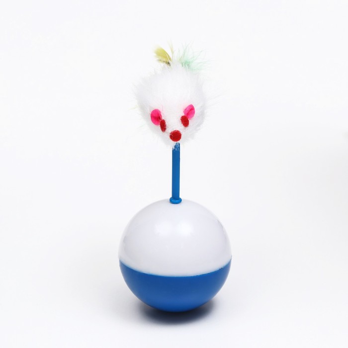 Мышь-неваляшка на шаре, 11×6 см, искусственный мех, синяя, белая