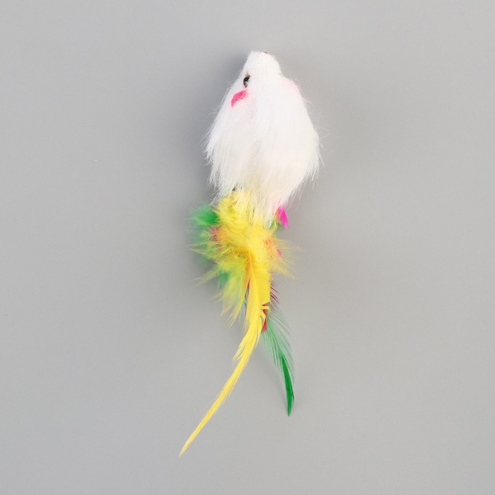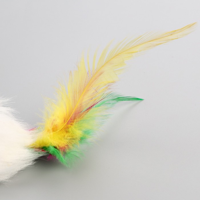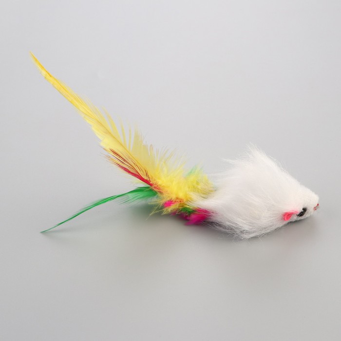 Мышь, однотонная, с перьями, 6.5 см, искусственный мех, белая