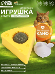 Шарик для кошек с бубенчиком «Луна», 3.8 см, синий/белый