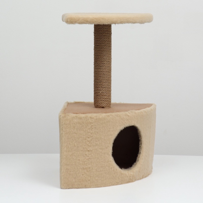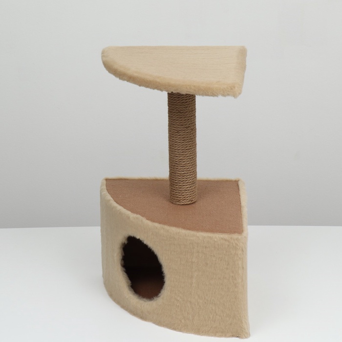 Домик для животных угловой, 35×35×64 см, джут, бежевый
