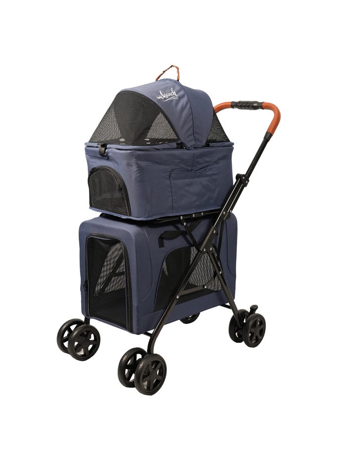 Прогулки вдвоём — без компромиссов. Двойная коляска для собак и кошек до 10+10 кг — удобный вариант для тех, у кого два питомца. Голубой цвет делает модель лёгкой визуально и выделяет её среди городского фона.