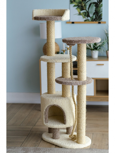 Комплекс для кошек с когтеточкой, с лежанкой «Апель» 70×42×155 см, сизаль, капучино