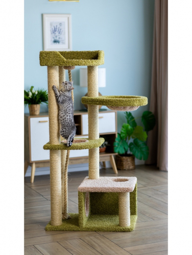 Комплекс для кошек с когтеточкой, с лежанкой «Камуля» 78×47×158 см, сизаль, зеленый, бежевый 1