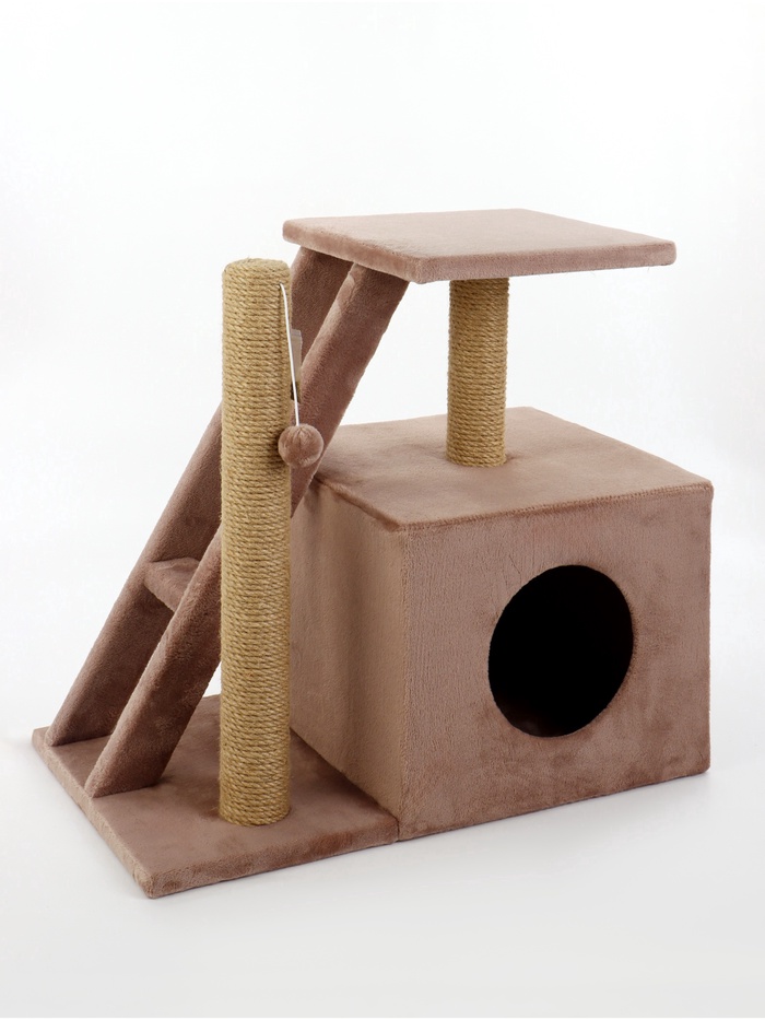 Домик для кошек с когтеточкой «Домосед», 60×35×56 с, с лестницей и площадкой, цвет капучино