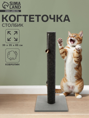 * Устойчивая конструкция: Цилиндрический столбик высотой 85 см обмотан плотным ковролином. Это дает коту возможность всеми лапами тянуться и точить когти, как в естественных условиях.