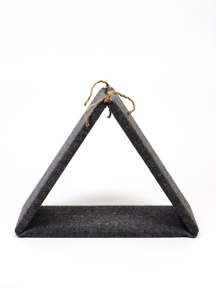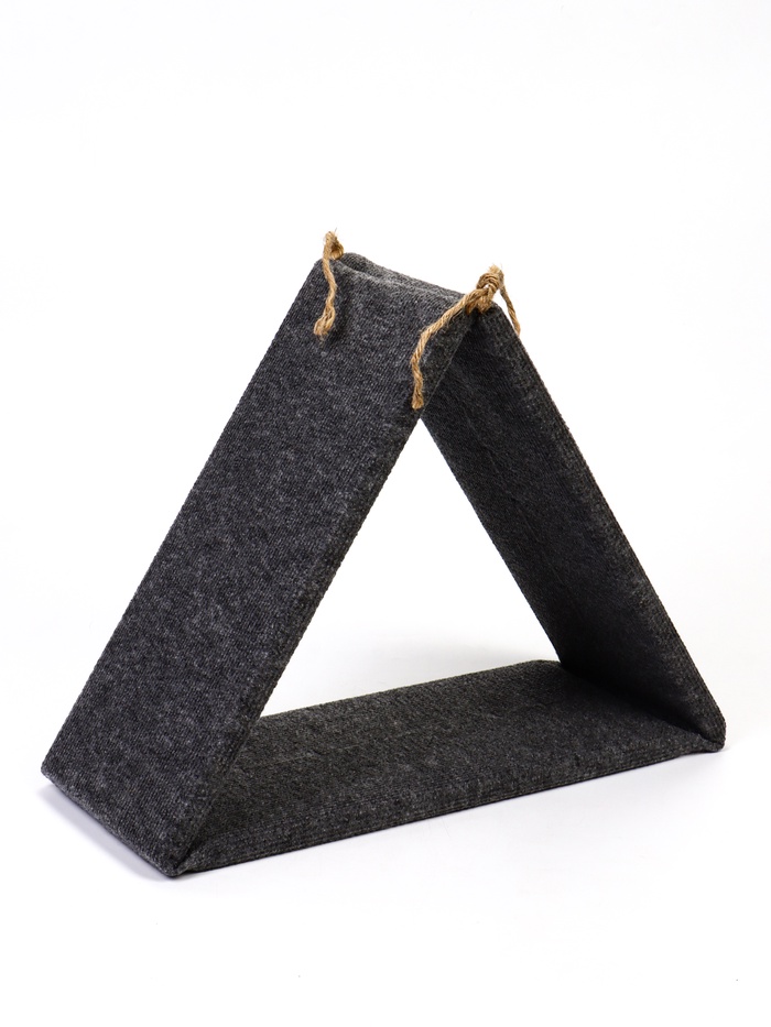 Когтеточка — компактная трёхсекционная модель высотой 44 см с ковролиновым покрытием. Серый цвет, отсутствие рисунка и строгая форма делают её нейтральным элементом интерьера, а продуманная геометрия обеспечивает три ключевые зоны: для царапания, лежания и наблюдения.