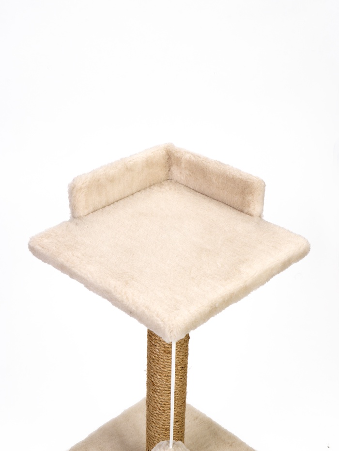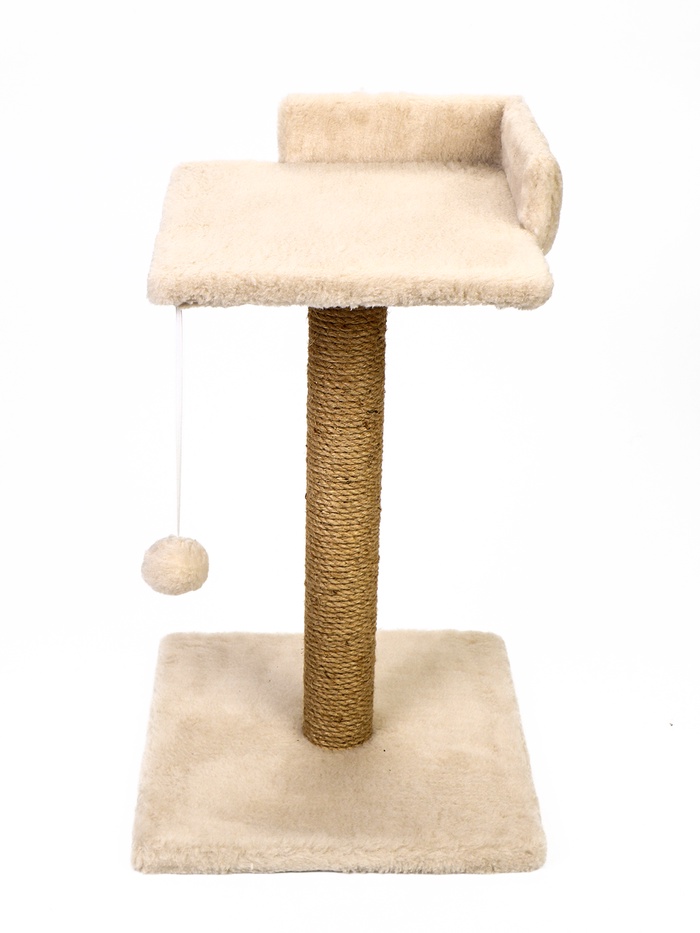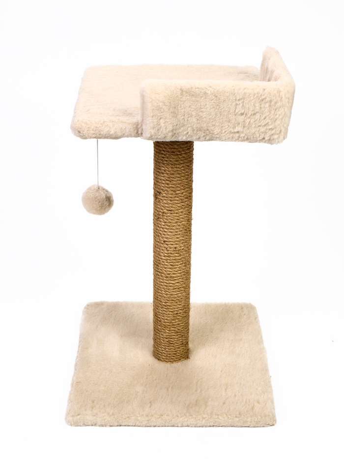 Когтеточка-столбик Petmil «Релакс», 60×35×35 см, с полкой - лежанкой и игрушкой, джут, бежевая