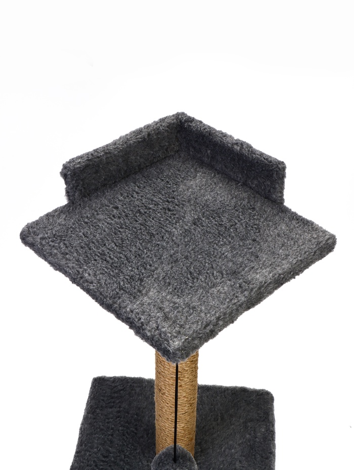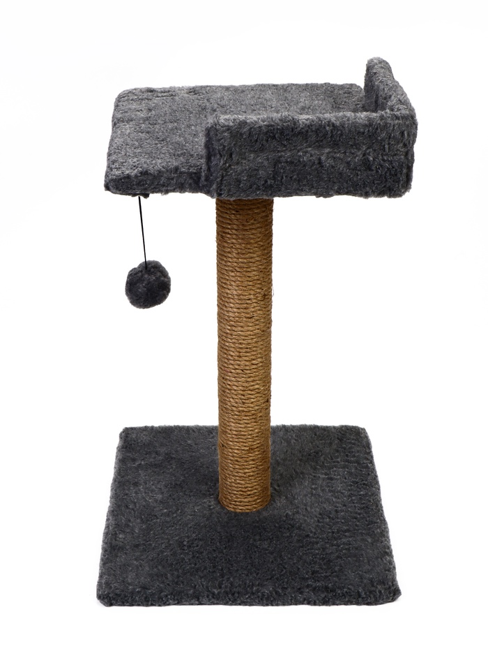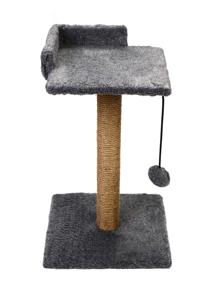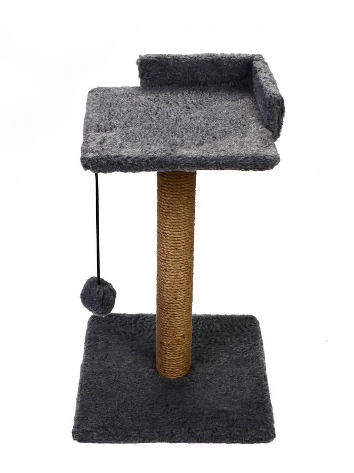 Когтеточка - столбик Petmil «Релакс», 60×35×35 см, с полкой - лежанкой и игрушкой, джут, серая