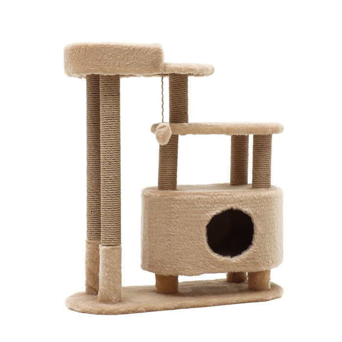 Домик для кошек с когтеточкой, 80×33×91 см, овальный, с площадкой, джут, цвет МИКС