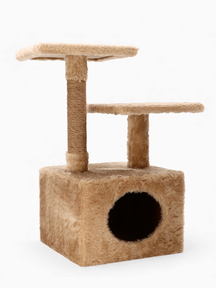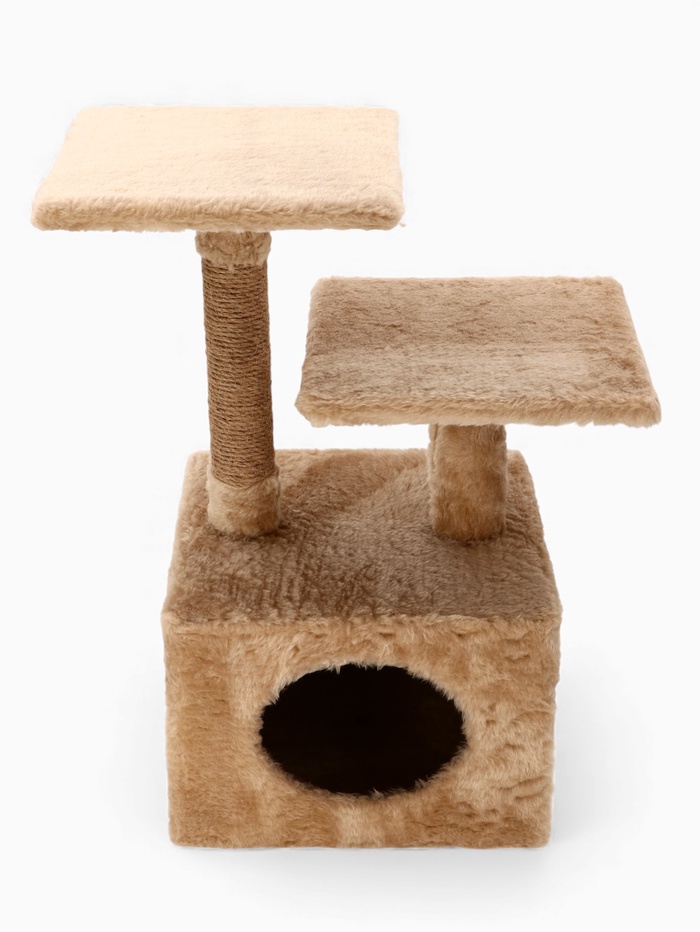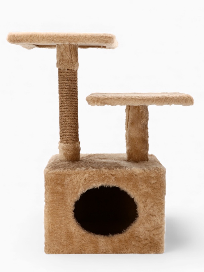 Домик-когтеточка, 53×35×65 см, 2 уровня, квадратные полки, бежевый