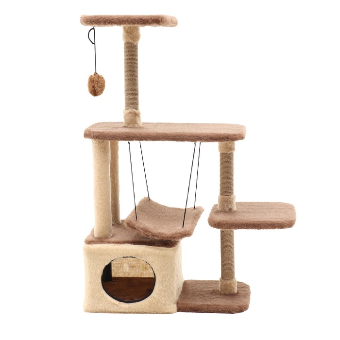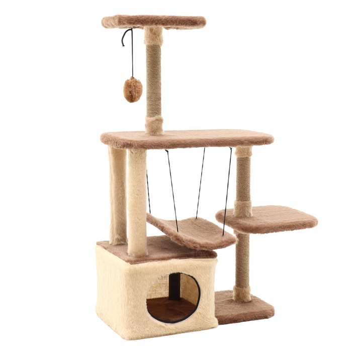 Комплекс для кошек, 33×76×105 см, разборный, с когтеточкой, с гамаком, бежевый
