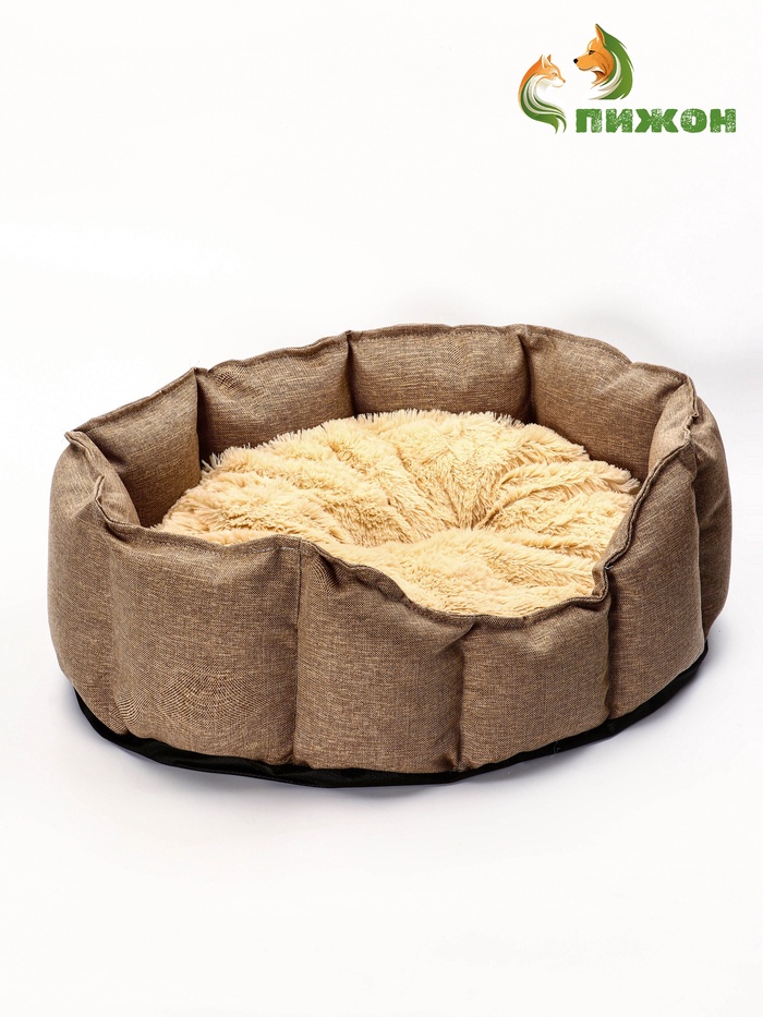 * Два слоя комфорта: Внешняя часть из мебельной рогожки выдерживает активное поведение питомца, а внутренняя зона из искусственного меха создает ощущение тепла и уюта даже в прохладное время года.