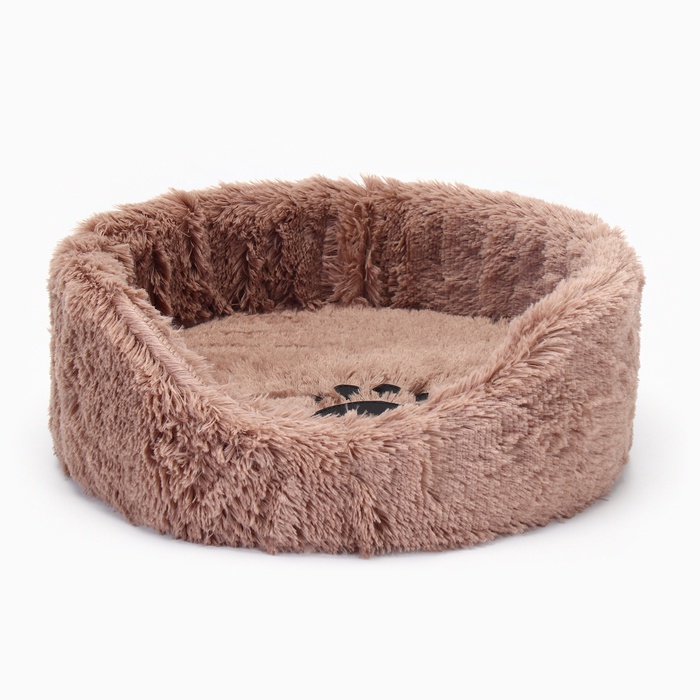 Лежанка для животных, с подушкой, мех, сатин, периотек, 40×40×16 см, микс цветов