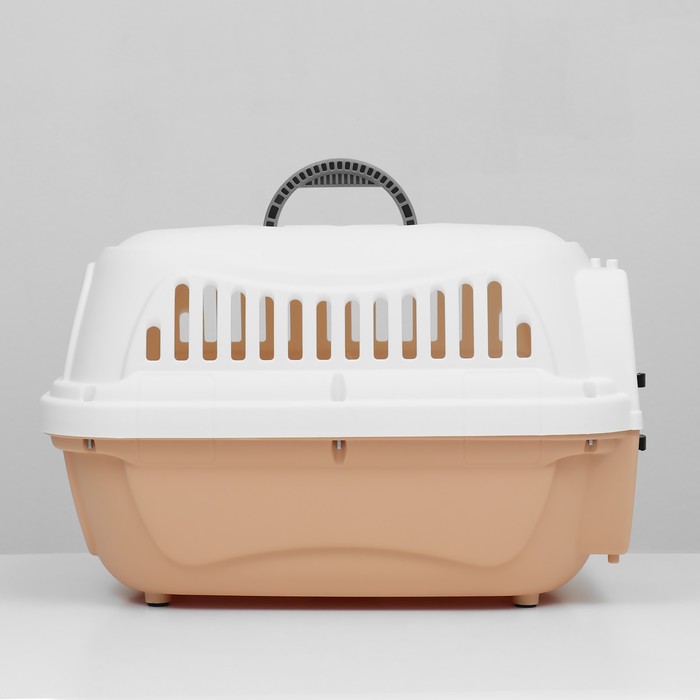 Переноска для животных, 47×32.5×30 см, вес до 9 кг, с металлической дверью, пластик, персиковая