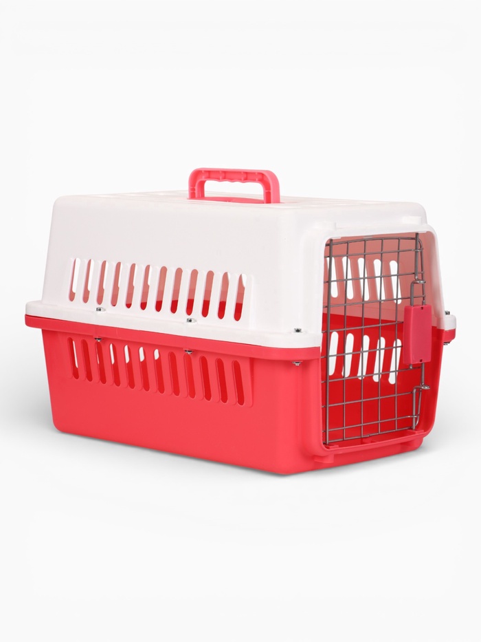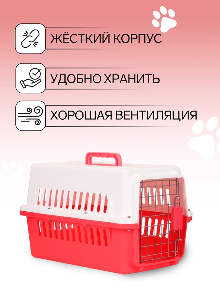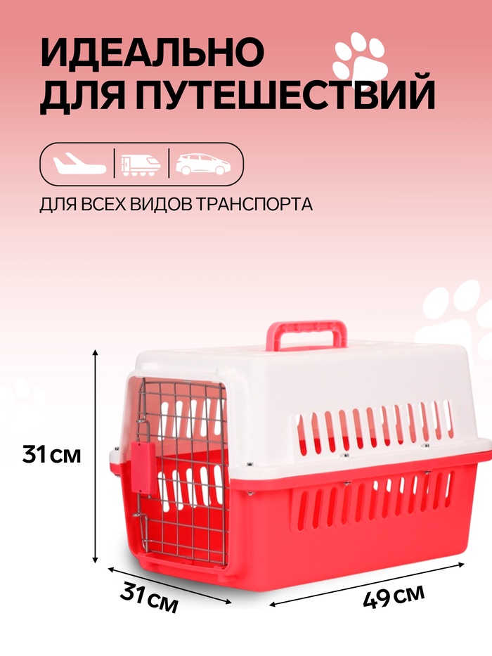 Переноска для животных, 49×31×31 см, с металлической дверью, пластик, белая, розовая