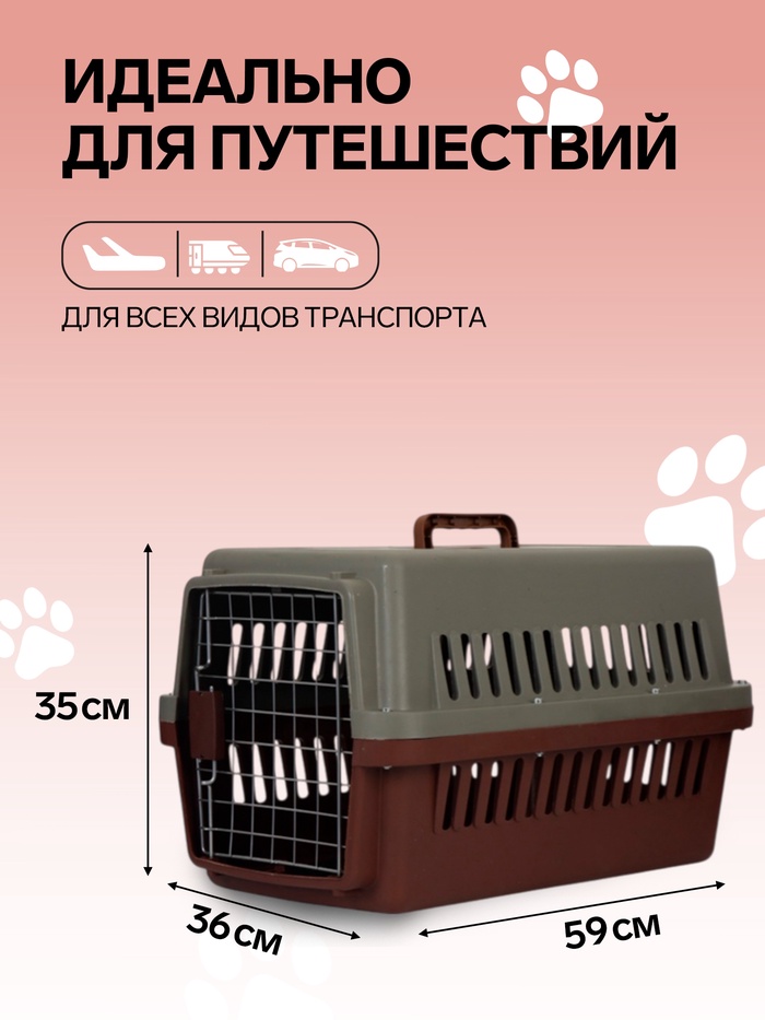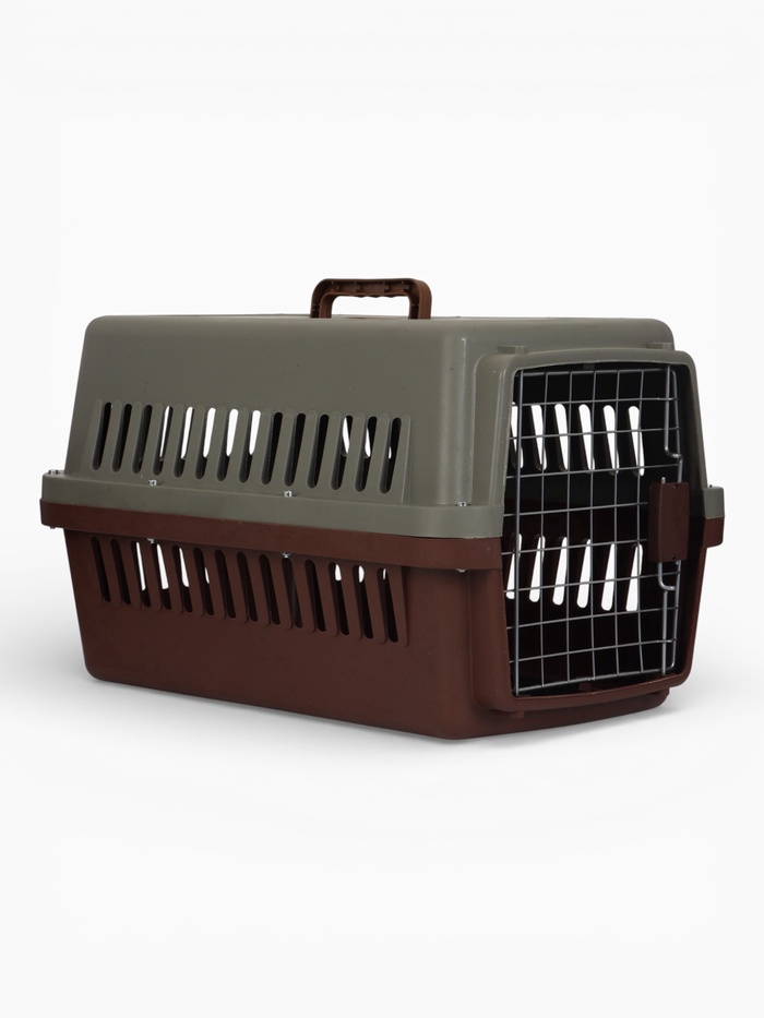 Переноска для животных, 59×36×35 см, с поддоном, с металлической дверью, цвет кофейный, серый