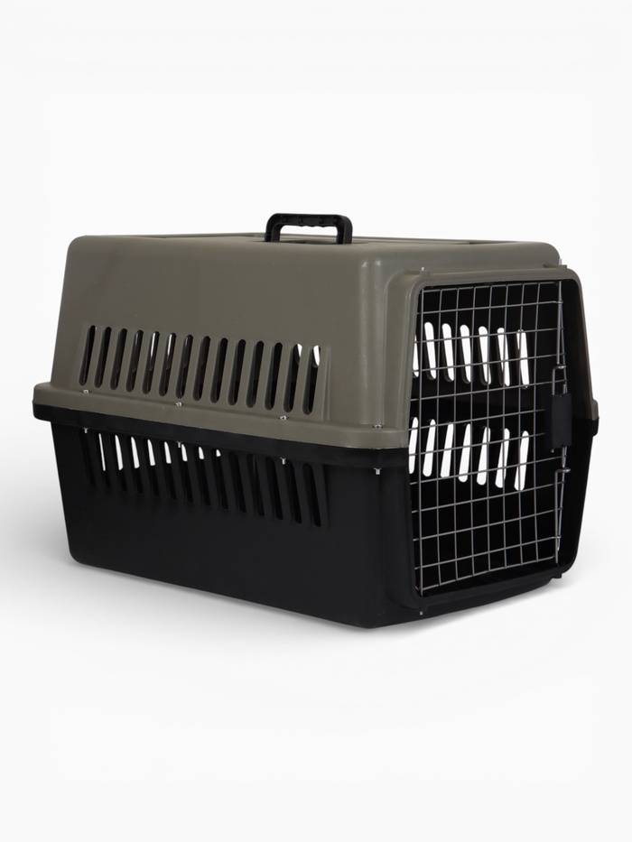 Переноска для животных, 64×45×45 см, с металлической дверью, пластик, серая, чёрная