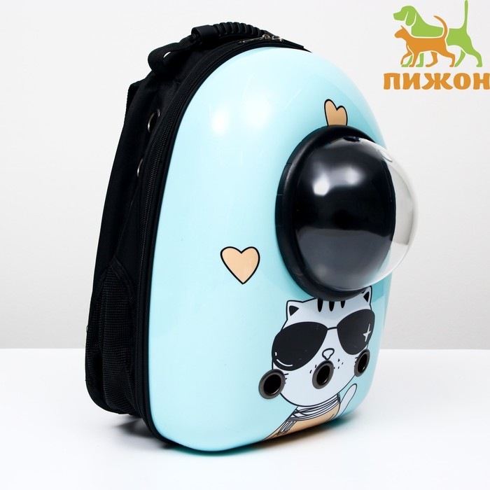 Рюкзак для переноски кошек «Гламуррр», 32×25×42 см, с окном для обзора, голубой