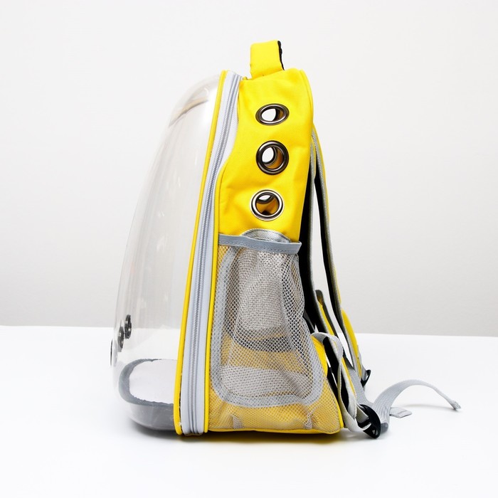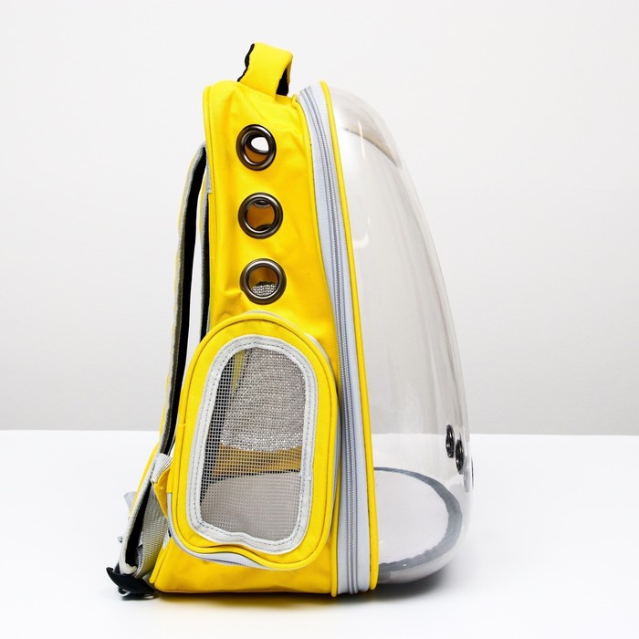 Рюкзак для переноски кошек«Котик», 34×25×40 см, прозрачный, жёлтый