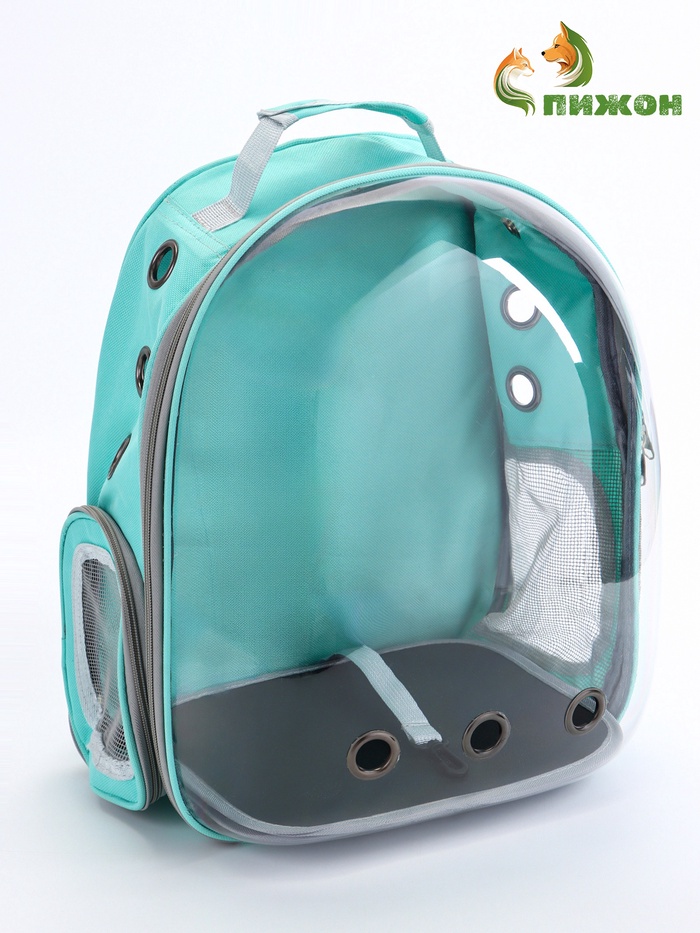 Рюкзак для переноски животных, 31×28×42 см, прозрачный, бирюзовый