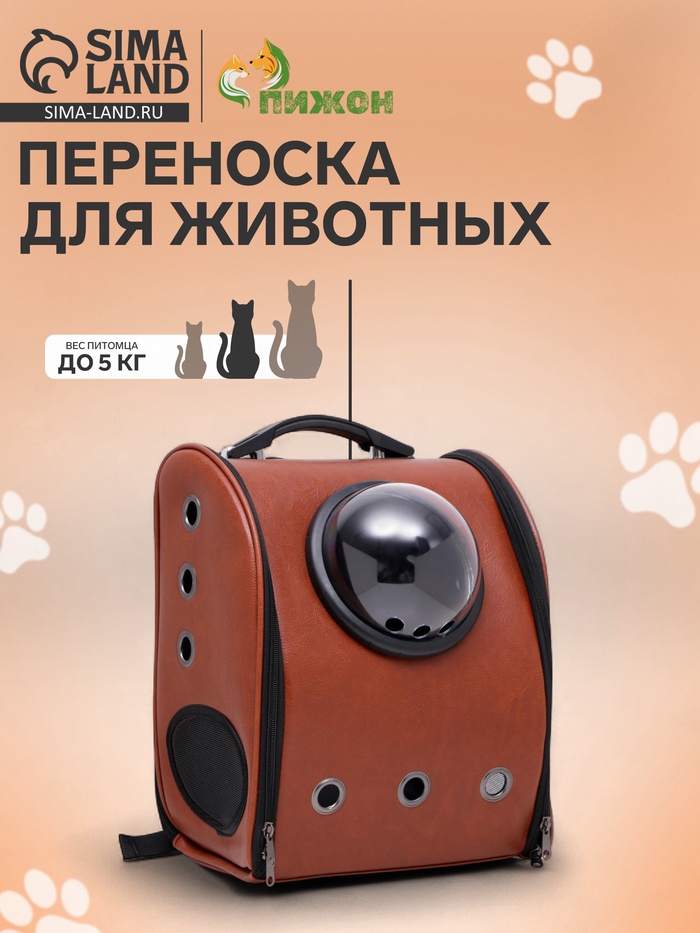 Рюкзак - переноска для кошек и собак «Элеганс», 32×18×37 с, с окном, коричневый