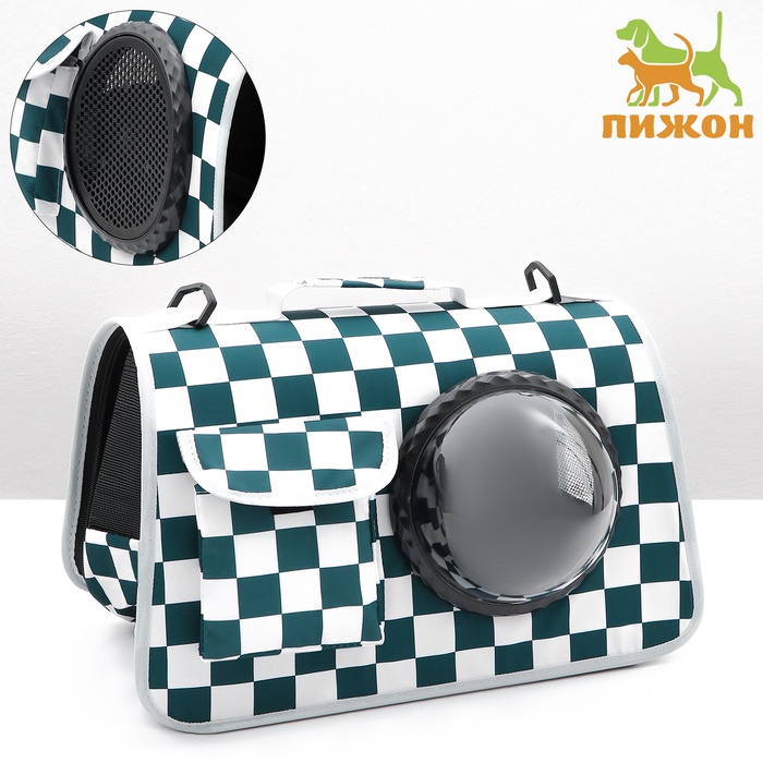 Сумка - переноска, 43×24×28 см, с органайзером и иллюминатором, белая, зелёная