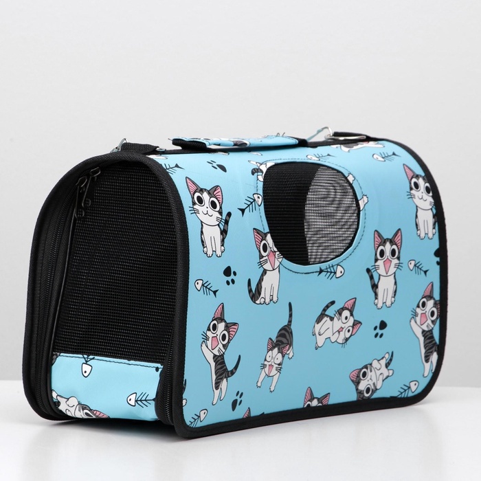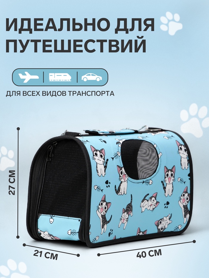 Сумка - переноска для животных «Играющие котики», размер M, 40×21×27 см голубая