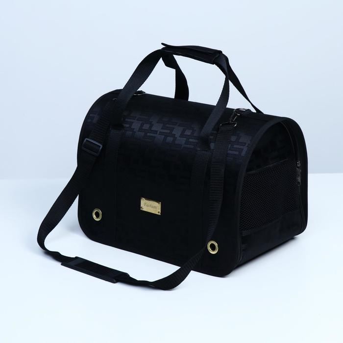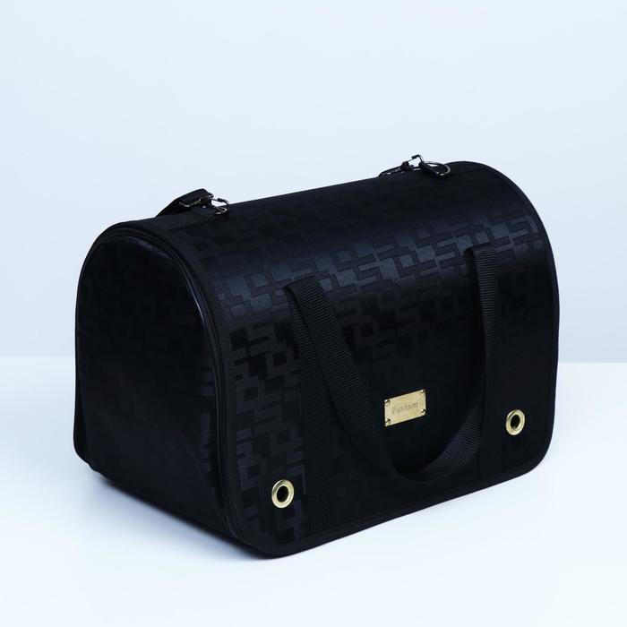 Сумка - переноска для животных «Люкс», 40×25×26 см, ПВХ, жаккард, чёрная
