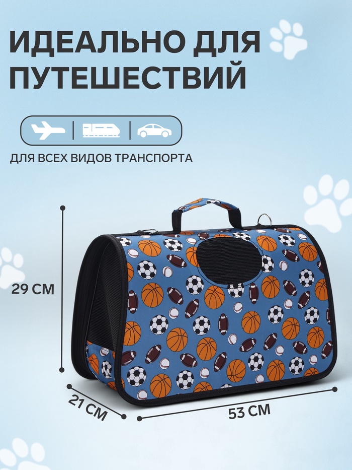 Сумка - переноска для животных «Спорт», размер L, 53×21×29 см, голубая
