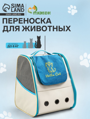 Сумка - переноска для животных «Спорт», размер M, 40×21×27 см, голубая