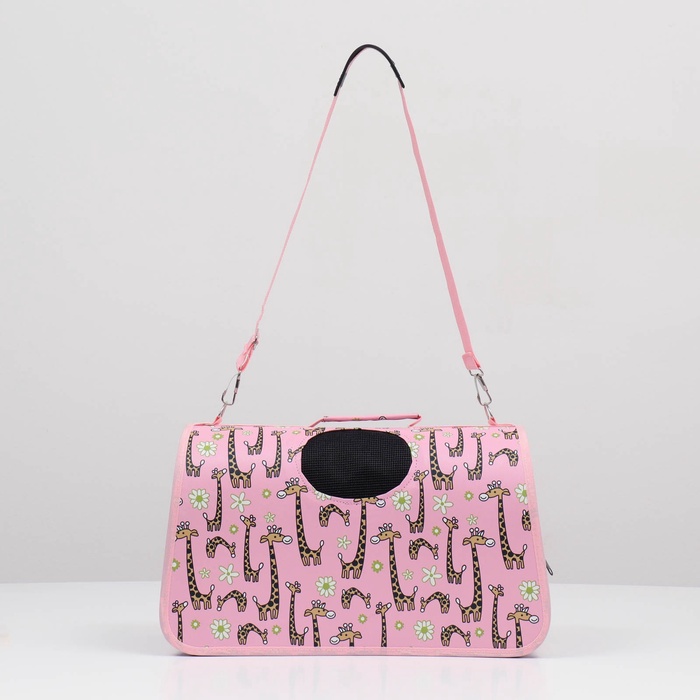 Сумка - переноска «Жирафы», размер S, 37.5×17×22 см, каркасная, розовая