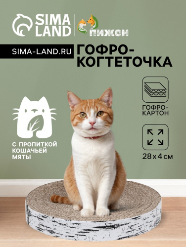 Изделие из гофрокартона выполнено из натуральных материалов и безопасно для когтей котов и кошек. Структура когтеточки напоминает питомцам кору дерева, поэтому изделие привлекает их внимание и является антистрессом.