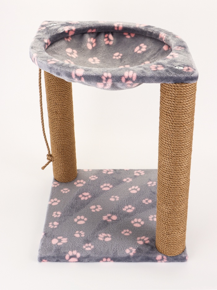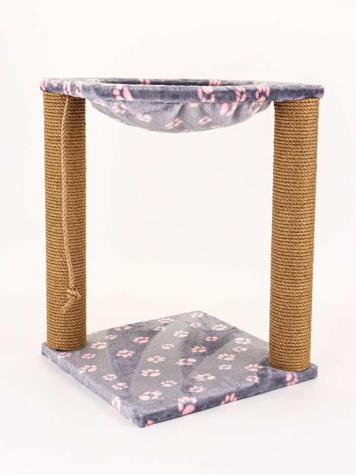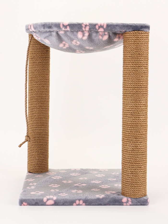 Когтеточка «Зверьё Моё» c гамаком, 40×40×50 см, джут, серая, розовые лапки
