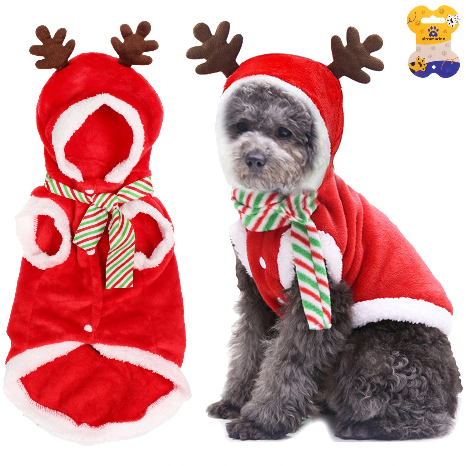 Кофта плюшевая с капюшоном для собак мелких пород  "Олень Рудольф"