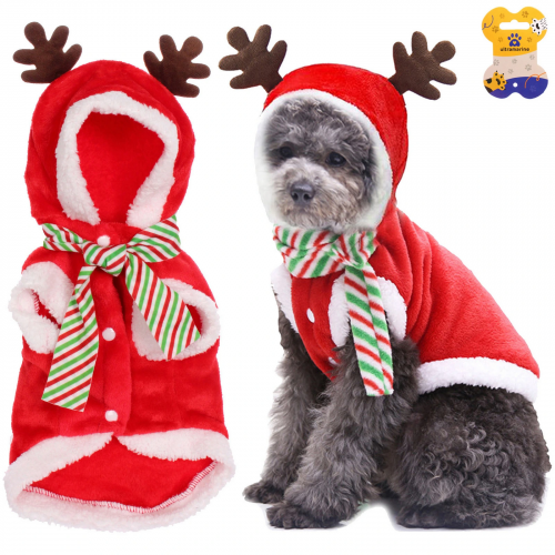 Кофта плюшевая с капюшоном для собак мелких пород "Олень Рудольф", размер XL (50*40см)