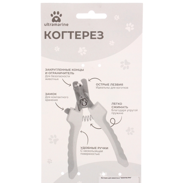Когтерез для животных "ЗООУЛЬТРА", пружинный механизм, ручки прорезиненные - волна, цвет чёрный / голубой, 16см