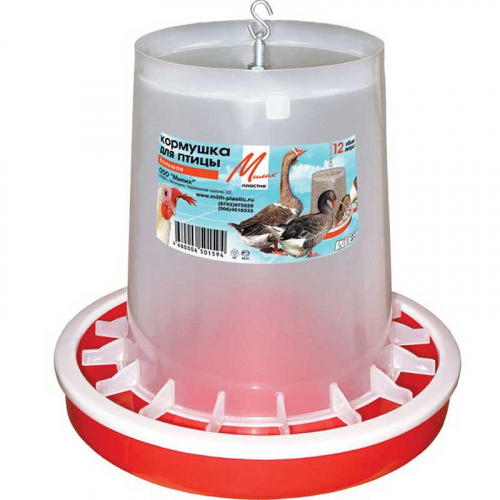Бункерные кормушки имеют массу положительных качеств, они действительно удобны в использовании, просты в применении. Предназначена для молодняка и взрослой птицы (перепел, куры, бройлеры, утки, гуси, индюки). Её можно расположить на полу и в подвешенном состоянии, при этом устройство остаётся устойчивым и сбалансированным. Вмещает до 12 кг сухого корма. Кормушка заполняется через верхнее отверстие, контролировать наличие корма можно через прозрачный корпус резервуара. Разделительная решетка не позволяет цыплятам наступать на корм. Используя эту кормушку, вы обеспечите постепенное поступление свежего корма для птицы, исключающего его разбрасывание. Это не только является залогом качественного питания птицы, но и существенно экономит время птицевода.
