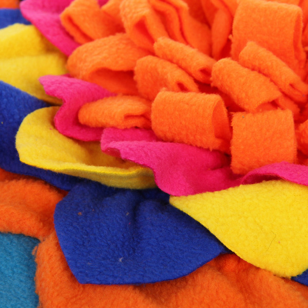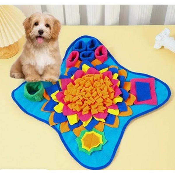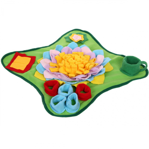 Текстильный коврик выполняет сразу несколько важных функций. Ваш питомец будет в восторге! Коврик для собаки мелких пород, а также больших и средних пород отвлечёт и развлечёт от ожидания выгула. Всего 15 минут активности заменяет один час прогулки. Достаточно положить в ячейки игрушки сухой корм, любимое лакомство и игра началась. Собака с огромным азартом и радостью ищет любимую еду, забывая обо всём. Коврик для дрессировки тренирует мозг, стимулирует интеллект, усиливает чувствительность к запаху.