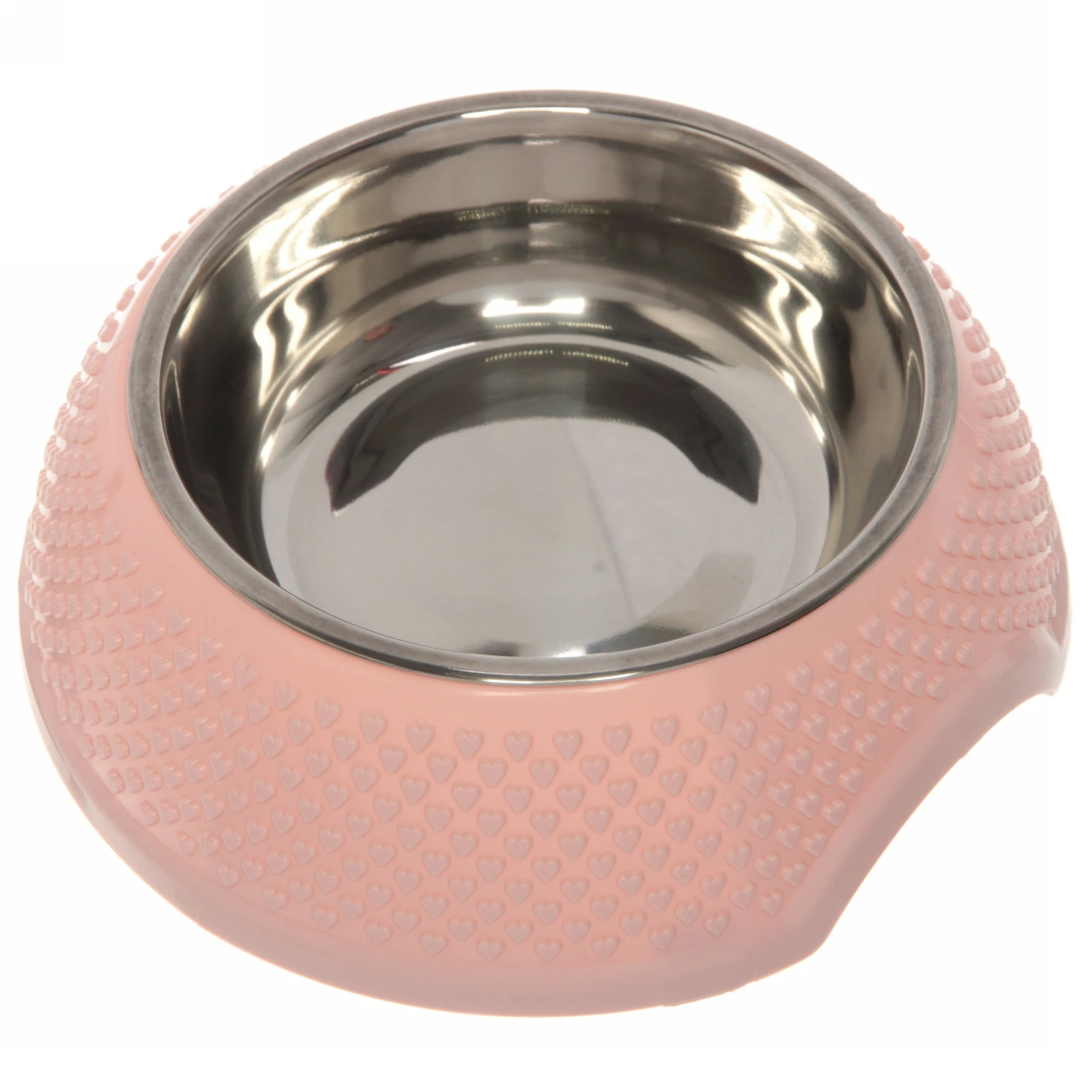 Миска металлическая "Колор-Сердце" 250мл 18,8*6см на пластиковой подставке, цвет розовый