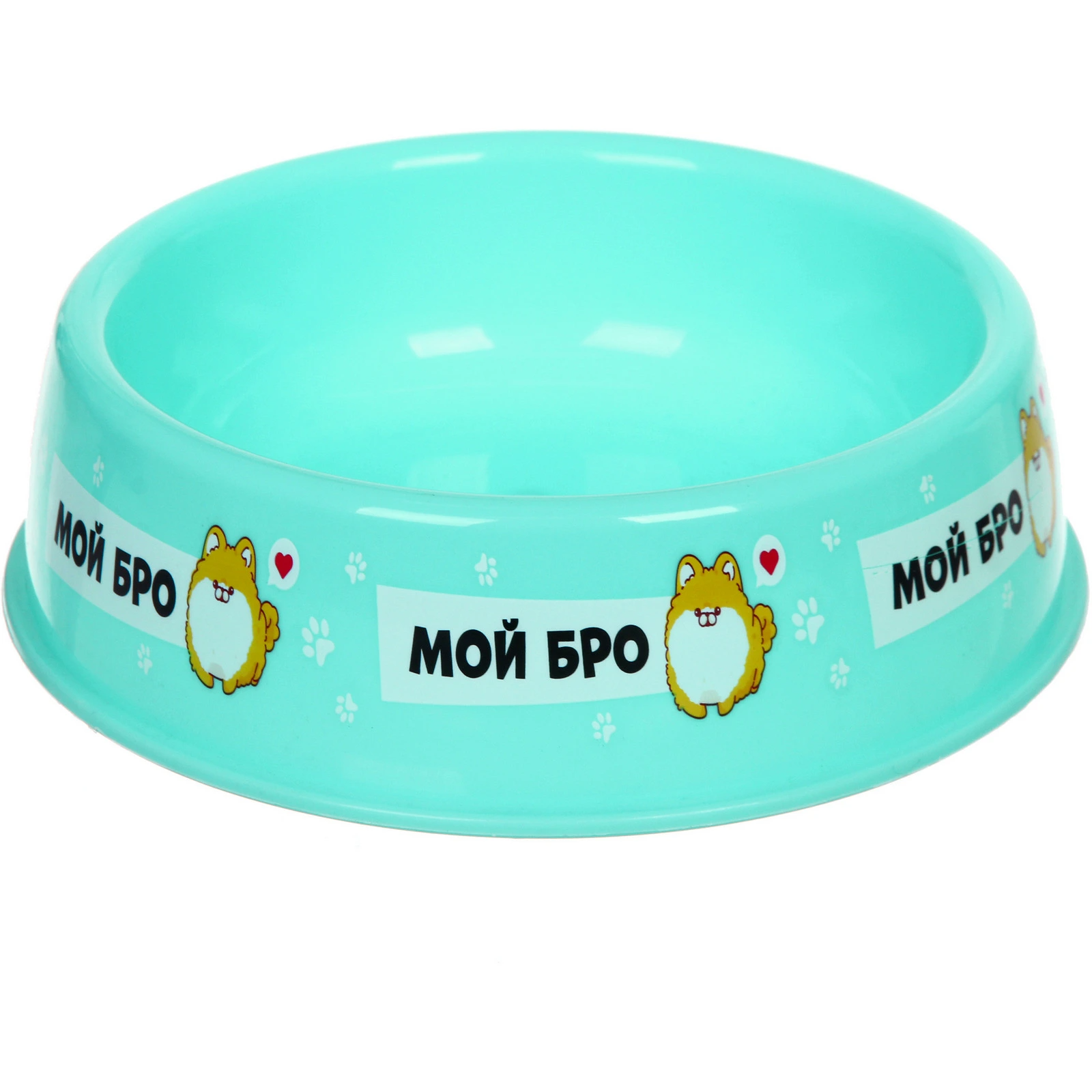 Миска пластиковая "МОЙ БРО!, цвет мятный,  21*6,5см (логотип на миске) 700 мл
