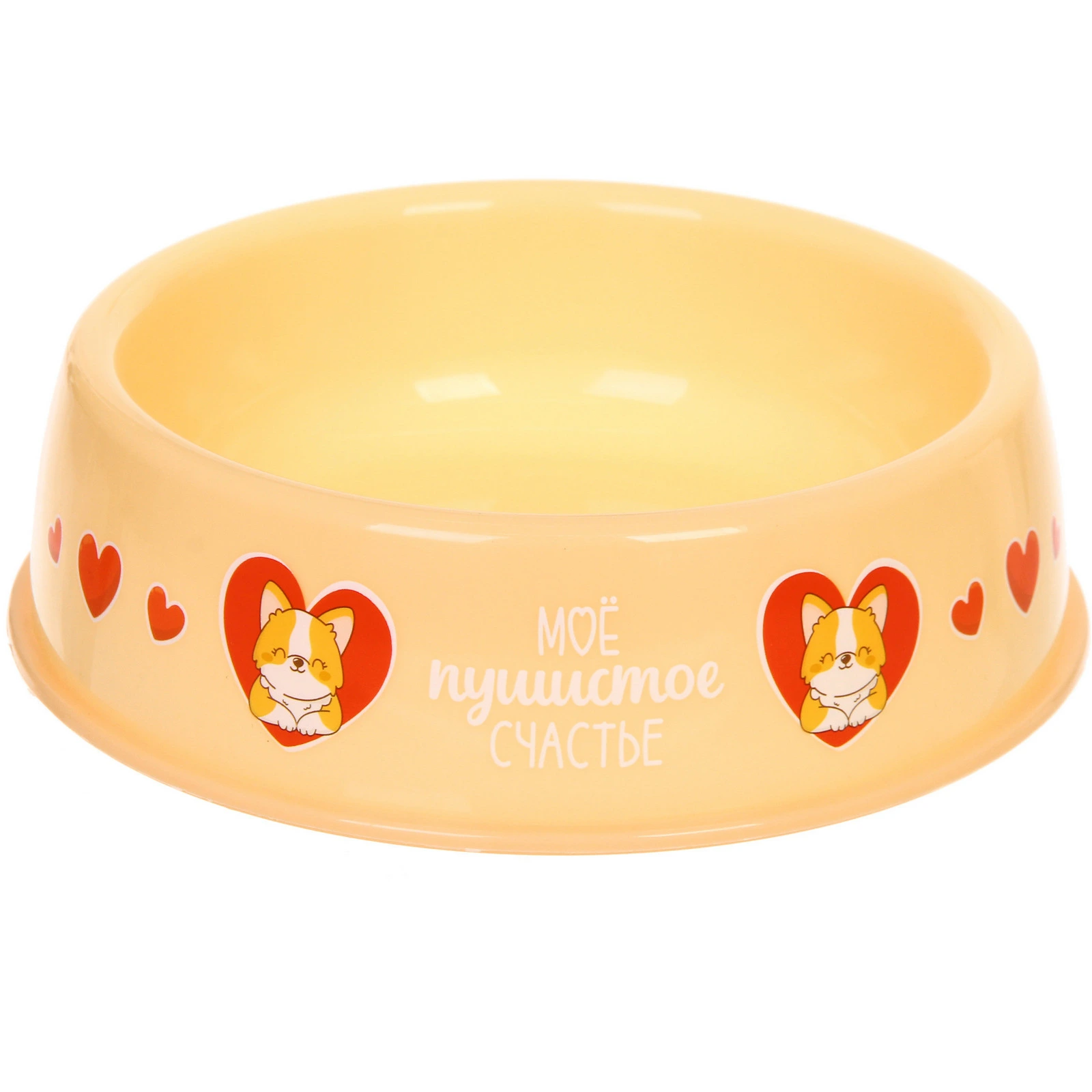 Миска пластиковая "МОЙ БРО - Мое пушистое счастье!, цвет бежевый , 21*6,5см (логотип на миске) 700 мл