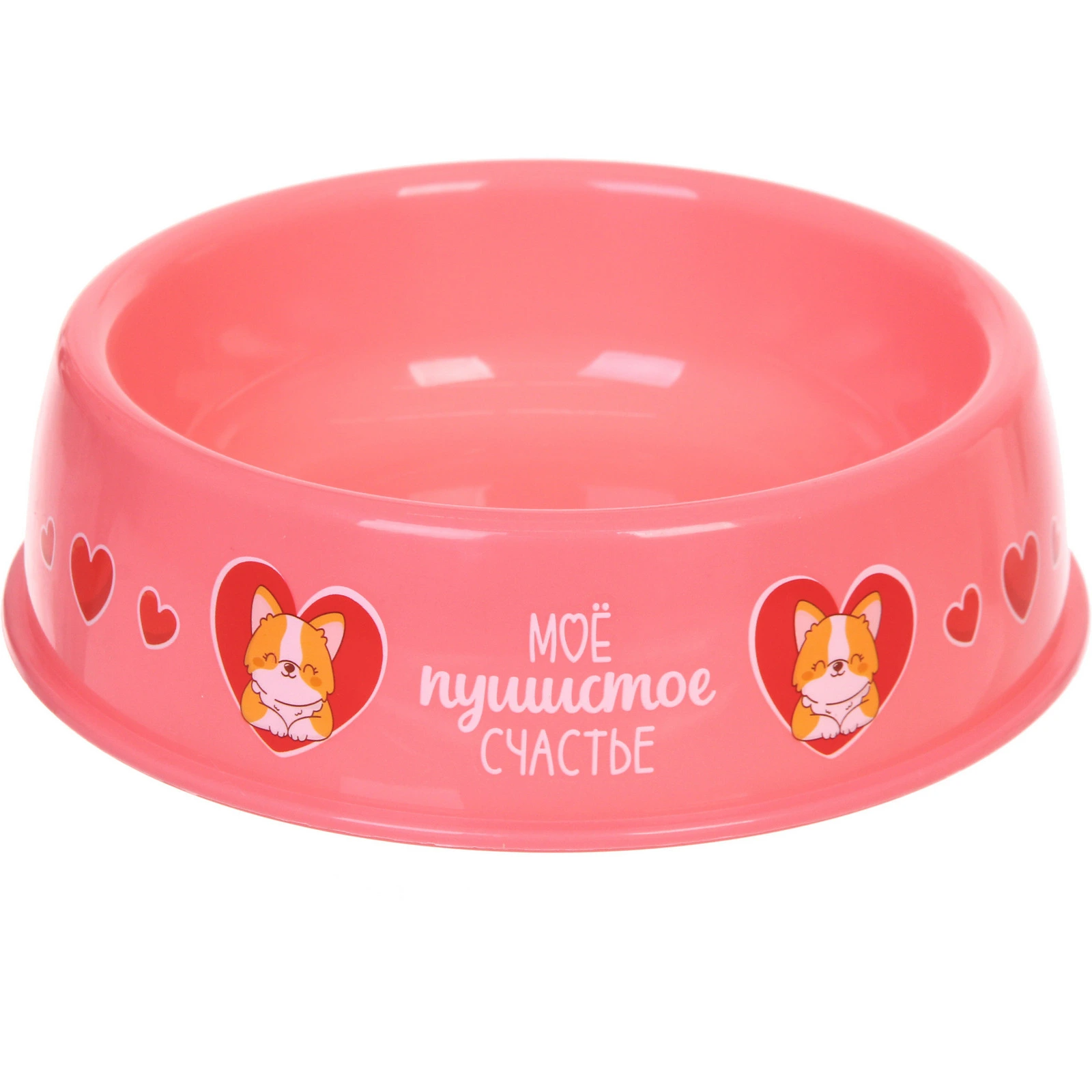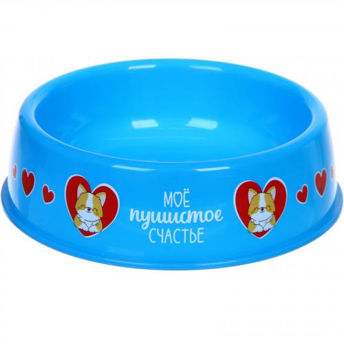 Миска пластиковая "МОЙ БРО - Мое пушистое счастье!, цвет розовый,  21*6,5см (логотип на миске) 700 мл